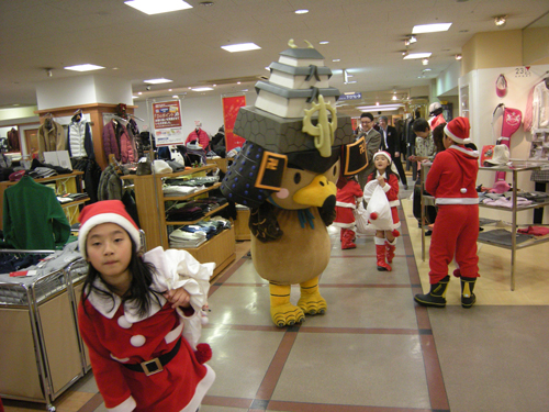 サンタに変身した子どもたちが、地下食品売場から5階までを練り歩き、ショッピングを楽しむお客さんにキャンディを配っていたよ☆