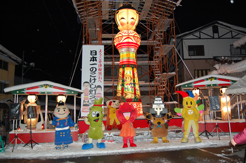 日本一と言うだけあって、一番大きいこけし灯ろうは7.6メートルもあるんだ