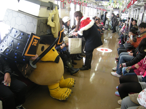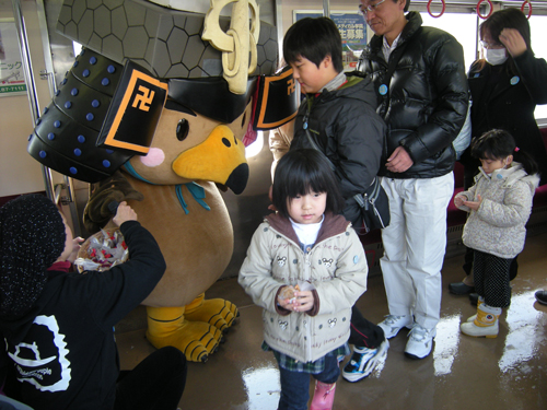 新里駅に到着してからは、弘南鉄道のラッセルくんと一緒にセレモニーに参加したよ