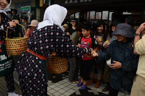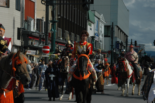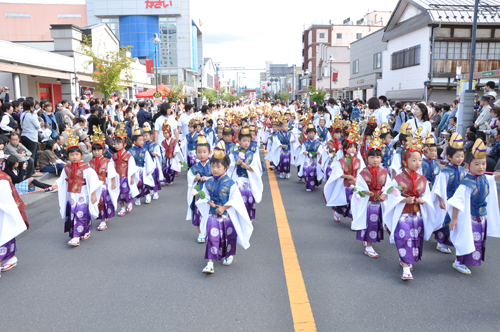 9月23日午後2時、雅楽を先頭に弘前市役所土手町分庁舎を出発し、桜大通りまで“時代”と“次代”が交差する歴史と文化の大パレードを行いました。 この街道行列は、弘前市を中心とした津軽地域の子どもから大人まで約1,300人が参加し、自らが主役となって創りあげました。 稚児行列 帷子(かたびら)を身にまとった弘前市と岩手県野田村の子ども達が約450人参加しました。 武者行列 翌日(9月24日)の流鏑馬(やぶさめ)国際大会参加者による、勇ましい武者姿での騎馬行列。 山車運行 天和2年(1682)、「神輿の露払い」として始まり、「弘前組ねぷた」にも影響を与えたといわれる弘前八幡宮祭礼の山車運行。 津軽の祭パレード 相内坊様踊り、福俵、どだればち流し踊りなど津軽各地の伝統的な祭りや踊りが披露されました。 市民パレード 市民製作による山車運行、殿様や昔の花嫁などを再現した仮装行列が行われました。 もんぺ姿でりんごを配る様子を見て、観客の中には、昔を懐かしむ人の姿がありました。 弘前“JIDAI”街道行列にご出演、ご声援くださった皆さまにお礼申し上げます。 |