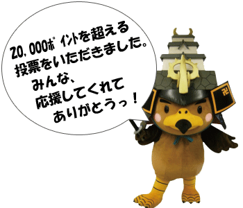 『たか丸くん』は、20,861ポイントを獲得し、349の参加登録キャラクター中32位、北海道・東北エリアの参加キャラクターの中では1位となりました。