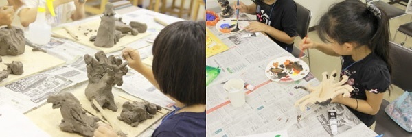 これまでに開催した親子向けワークショップで制作したオリジナルキャラクターや、油彩転写・透明水彩を用いて描いた作品などを展示します。