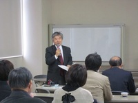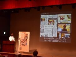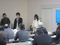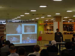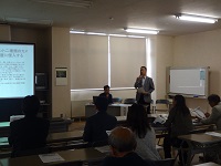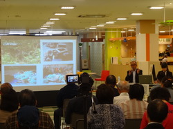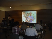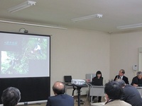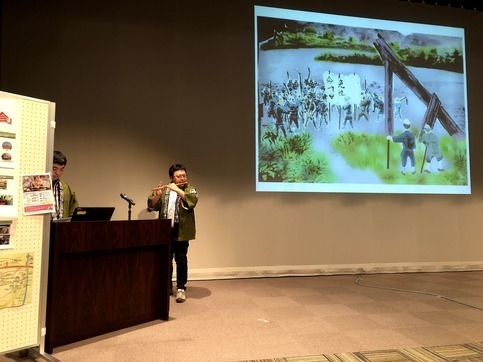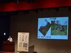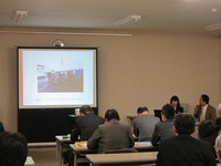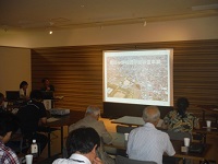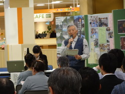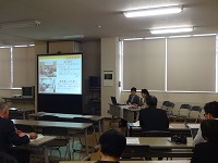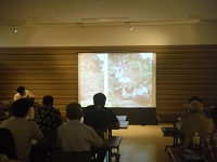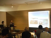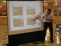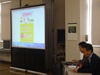 | 【発表の様子】 | 【写真をスクリーンに写しながら】 | |