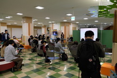 スライドや動画による事業紹介のほか、津軽笛地域づくり実行委員会さんによる笛の実演や、HIROSAKI_AIRさんによる「感覚の実験」の体験などもあり、参加者の皆さんは熱心に耳を傾けつつ、楽しみながら発表をご覧になっている様子でした。