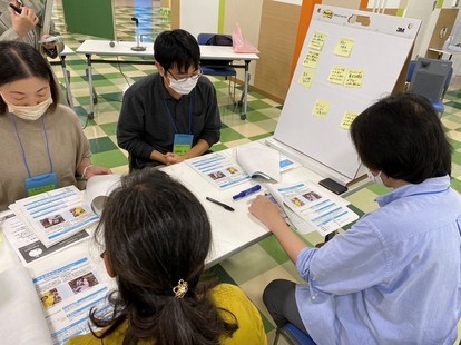 交流会は、まちづくりの興味・関心のある分野でグループに分かれて行われ、参加者は、活動の悩みを話し、その1つ1つの悩みについて、活動の経験などからアドバイスをし合うワークを行いました。