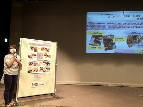 事業成果発表会は、1%システムの審査委員長で、弘前大学大学院地域社会研究科准教授の土井良浩さんの進行で、令和3年度に1%システムを活用した団体のうち、3団体から事業の実施内容や成果、今後に向けての展開などを発表していただきました。
