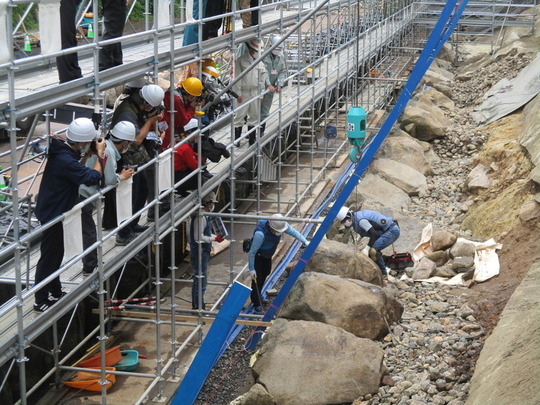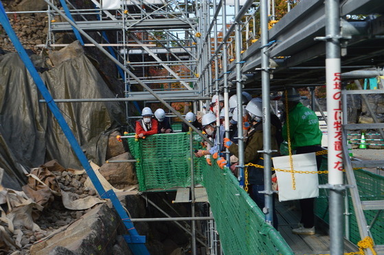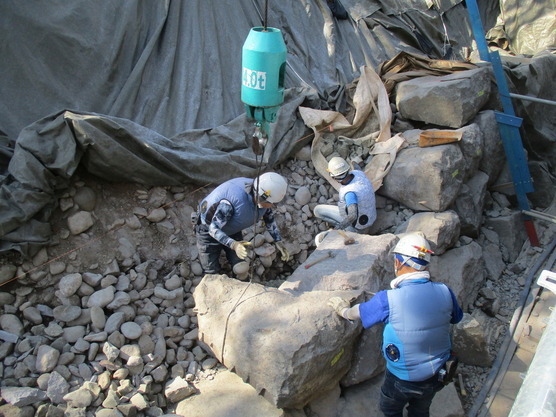 現在、上から13段目の積直し作業中です。年内には、12段目の積直しに着手する予定です。