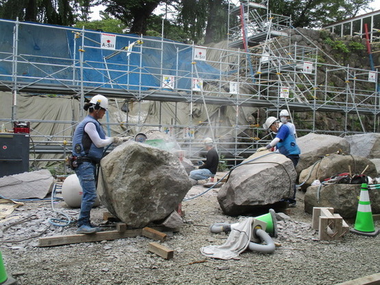 ▽石垣の仮組み作業