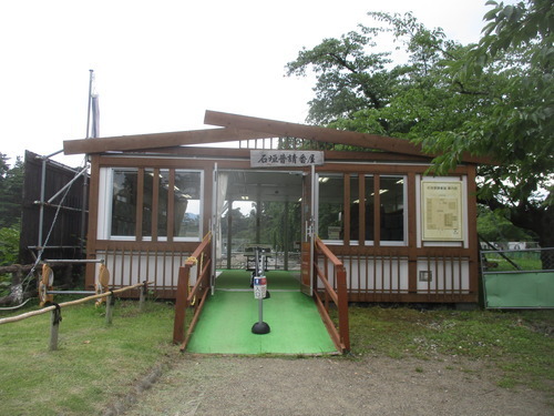 弘前城本丸石垣修理事業に伴い、弘前公園本丸北東側で公開していた「石垣普請番屋」は、石垣積直し工事が終盤を迎え石垣背面の園路復旧を行う段階となったため、令和6年10月31日(木曜日)をもって公開を終了しました。平成29年度の開館以降、7年間ご利用いただき、ありがとうございました。