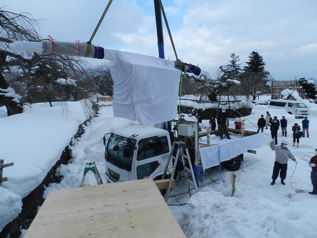 天守からの歴史資料(駕籠)の搬出(平成27年1月中旬)