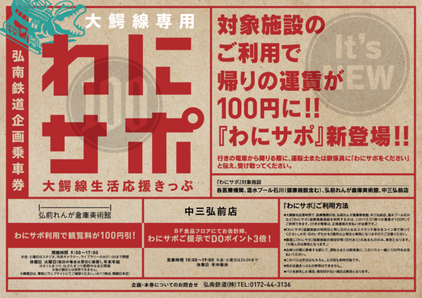 企画・本券に関すること 弘南鉄道株式会社 TEL:0172-44-3136