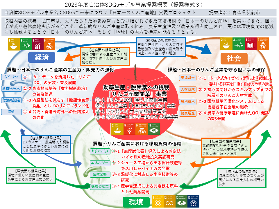 や環境負荷の低減などに取り組むとともに、図中央の赤いりんごの部分に記載した統合的取組