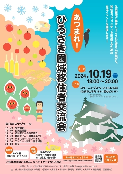 弘前圏域8市町村(弘前市、黒石市、平川市、藤崎町、板柳町、大鰐町、田舎館村、西目屋村)に移住してこられた皆さんが繋がり、移住者コミュニティを形成するための交流イベントを開催します!