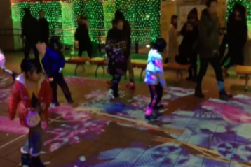 その後も青森の八甲田丸や八戸の「はっち」の壁を使ったプロジェクションマッピングなど、歴史ある各地の建造物を使い、デジタルとの融合でコンテンツを創り出す「ぱやらぼ」、そして葛西さん。2018年からは「インタラクティブコンテンツ」(※)にも挑戦するが、プログラムを駆使しての導線設計は葛西さんの学生時代から学んだ得意分野。「今になって役に立つとは。無駄なことはないなと感じた」と話す通り、前述の「デジタル花筏」はもちろん、2019年の雪燈籠まつりでは弘前駅の床に映像を映し、画面上のボールを蹴って遊ぶゲームで子供たちを賑わせた。