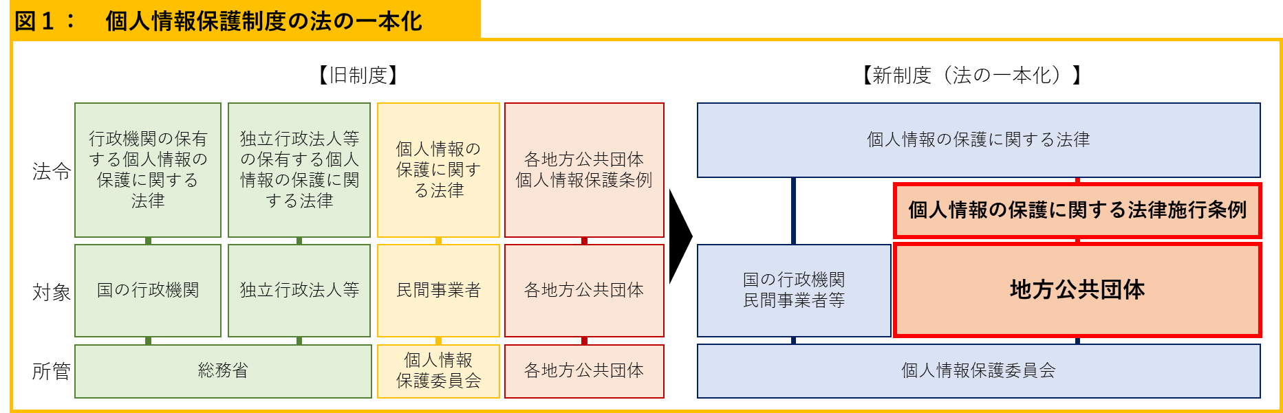 これまでの個人情報保護制度については、国の行政機関、独立行政法人等、民間事業者、そして各地方公共団体など、それぞれの対象毎に個別の法律、条例等が整備されておりましたが、その結果、規定の仕方や取扱いに不均衡・不整合が生じており、国が目指すデジタル社会の形成に向け「データ流通の支障となりうる」と考えられておりました。