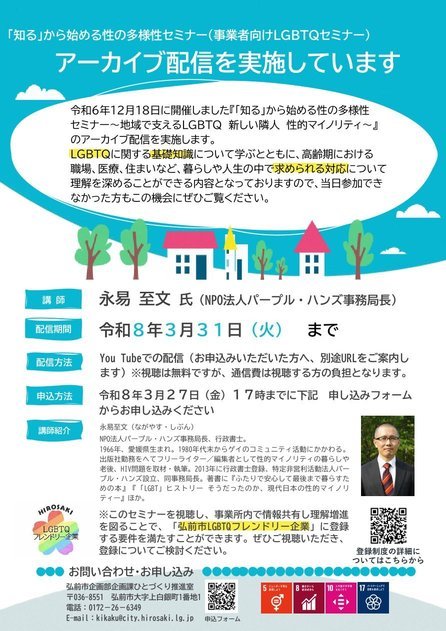 ぜひご視聴いただき、「弘前市LGBTQフレンドリー企業」への登録もご検討ください。