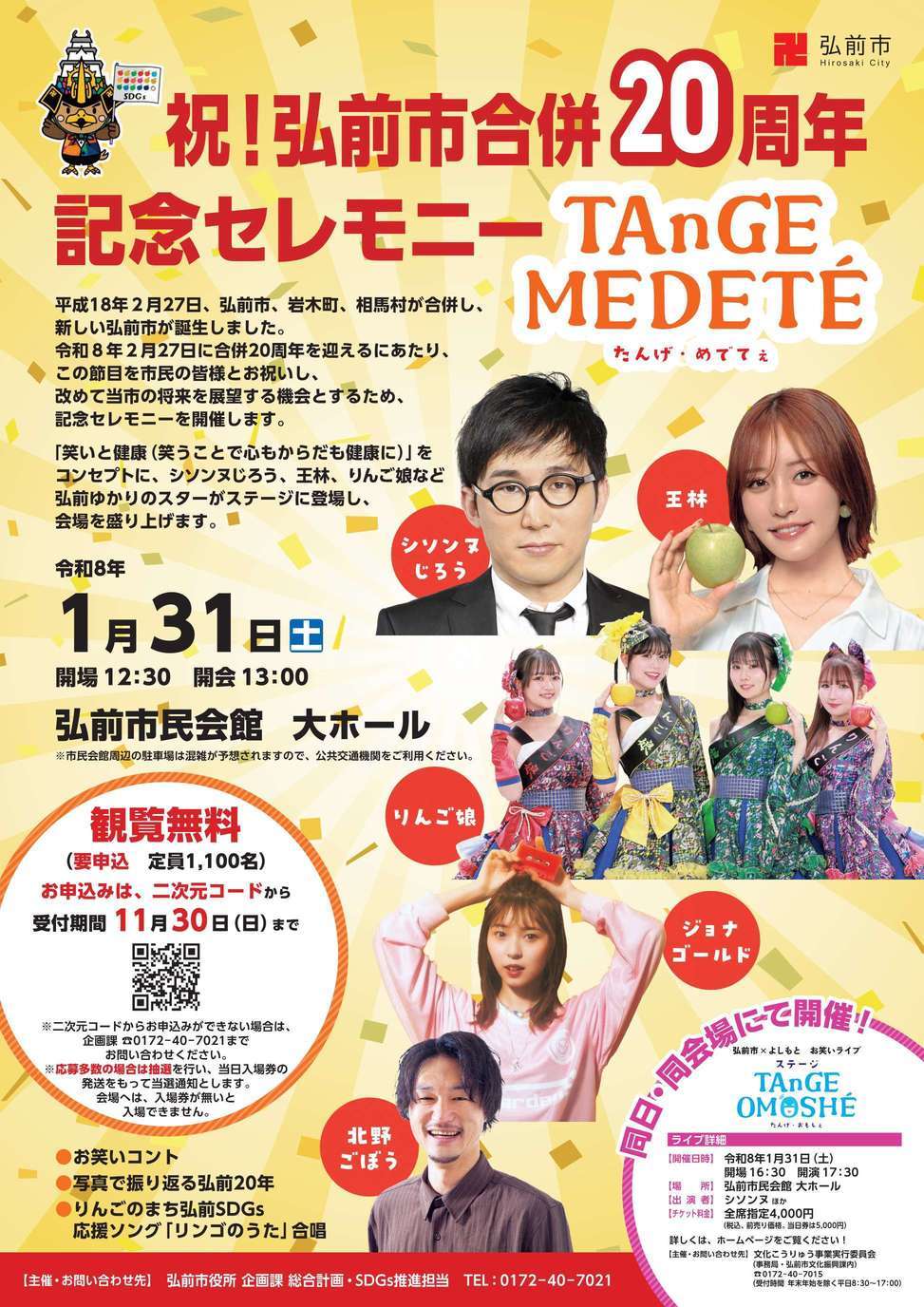令和8(2026)年2月27日に合併20周年を迎えるにあたり、この節目を市民の皆様とお祝いし、改めて当市の将来を展望する機会として、記念セレモニーを開催いたします。