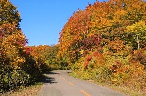 有料道路「岩木スカイライン」を通ると、美しい紅葉を見ながら8合目(標高1247メートル)