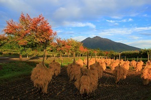 秋には岩木が誇る真っ赤なりんごや稲穂がたわわに実り、色とりどりの紅葉も相まって、