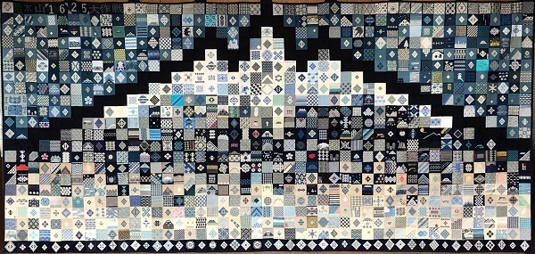 (県内外450名以上から集まった1000枚のこぎん刺しを繋いだタペストリー)
