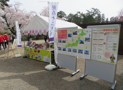 広聴広報課のシティプロモーションブース(現存12天守パネル展及び、各天守のパンフレット・記念品配布等)と協同出展し、弘前市の景観づくりに対する取組や、近代建築ツーリズムネットワークの取組等の展示を行いました。また、市内の前川建築をPRする前川建築カードや趣のある建物等のパンフレットも配布し、当市の景観資源の啓発活動を行いました。