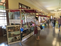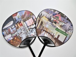 前川國男の建築作品に関する展示、近代建築ツーリズムネットワークの取組内容に関する展示を行いました。近代建築ツーリズムネットワークの概要や趣のある建物パンフレットの他、市内の前川建築と、重要文化財旧弘前偕行社を印刷したうちわを配布し、当市の景観資源の啓発活動を行いました。