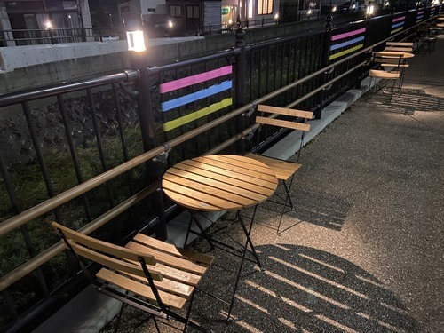中央弘前駅前のナナメ空間と、土手町と中央弘前駅をつなぐ遊歩道に、ライトと同じ等間隔のテラスを設置します。夜にはライトがムーディーな雰囲気を醸し出す、座るだけでおしゃれなテラス、使い方は皆様次第です。