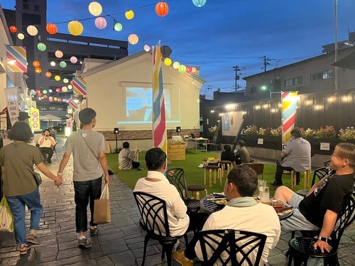 オープンスペースを活用した芝生広場を展開し、くつろげる空間が出現するとともに、子どもたちが楽しめる縁日・露店を用意します。夜は芝生をラウンジとして活用できるようコンテンツを準備しています。