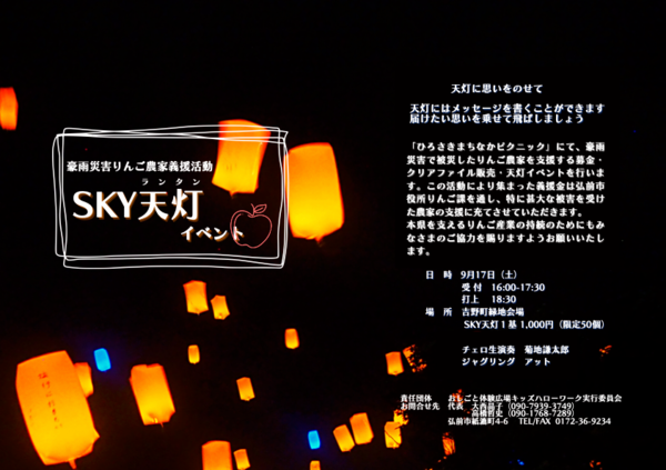 なお、SKY天灯イベントは8月の豪雨災害で被災したりんご農家を支援する活動の一つとして実施いたします。