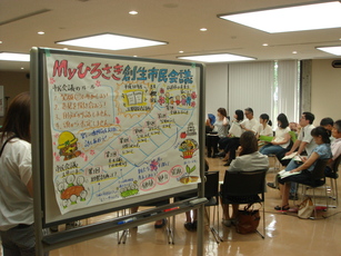 平成28年度から、市民の皆様が主体となって、自分の(My)弘前、ふるさと弘前について、新たな『はな』(価値、魅力、資源等)やまちづくりの方向性等について話し合う場として、「Myひろさき創生市民会議」を開催しています。
