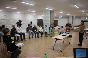 はじめに、「ひとづくり」分野で活躍している市民の方から、ご自身の取り組みについてお話ししていただきました。その市民ゲストスピーカーは、NPO法人スポネット弘前理事長の鹿内さん、あんよ・せらぴー共育研究会会長、スマートフットワーク代表の境さん。鹿内さんは、子どもたちへスポーツの楽しさを教えながら、境さんは子どもたちの放課後の居場所づくり等を通してひとづくりをしています。お二人の話を聞いた参加者からは、「感動しました!」「お二人のような人材の情報を集めて、冊子などで分かりやすく紹介されればいいな。」「自分もひとづくりに関われたらいいなと思った。」などたくさんの声をいただきました。