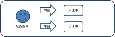 (2)複数の技術者を同一の建設工事の入札に配置予定技術者として申請すること。