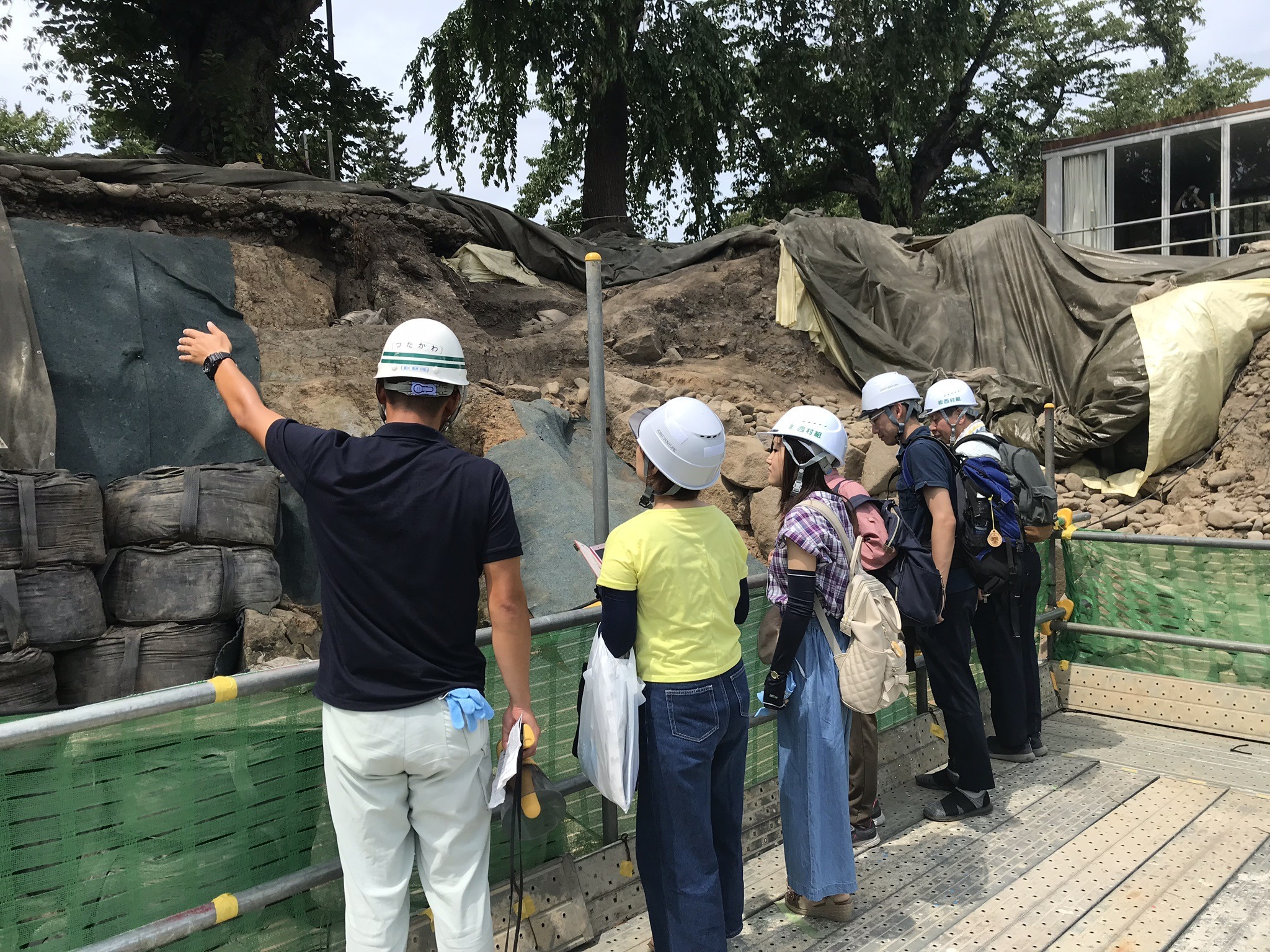 石垣の積み直しの際に敷き詰める裏込石(うらごめいし)に、未来へ向けたメッセージを記していただくメモリアルストーン体験や現場遺構説明などを行うイベントを開催しました。