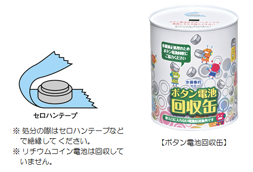 ご家庭で使用済みのボタン電池は、「有害ごみ」の収集日に出すか、回収協力店に持ち込みしてください。市内の回収協力店は、「ボタン電池回収推進センター(一般社団法人電池工業会)