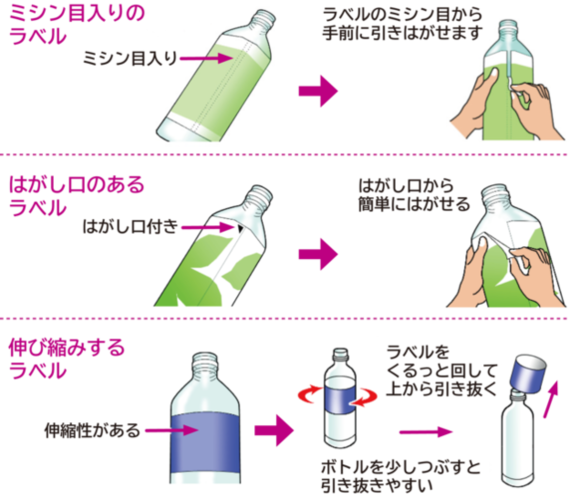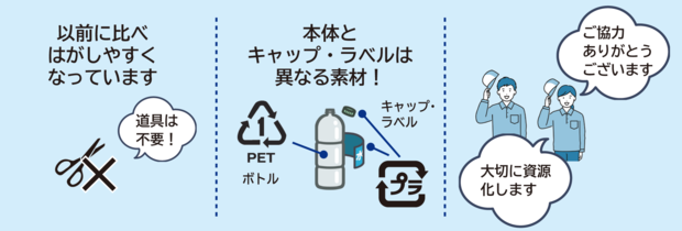また、市町村からのペットボトル引き取りに関する全国的な基準が変更され、容易にはがせるラベルははがすよう求められていることも要因の一つです。 |