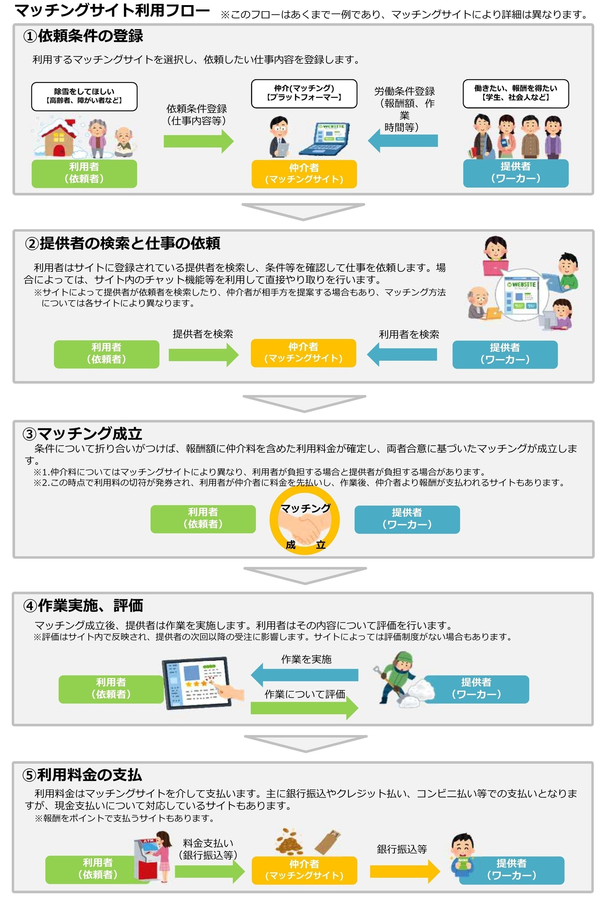 ・弘前市が事業者及びマッチングサイトのあっせん・仲介を行うものではありません。また、契約などに一切関わりません。