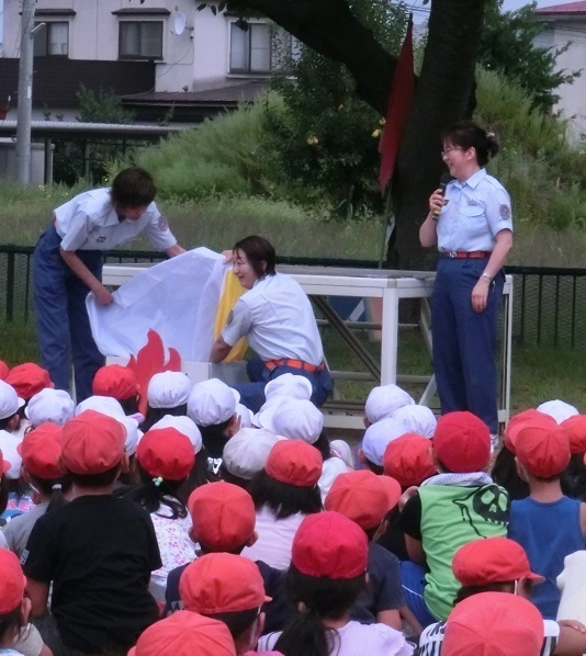 ○内容:避難訓練後の講評や、火災時の安全行動についての講話、模擬消火活動など