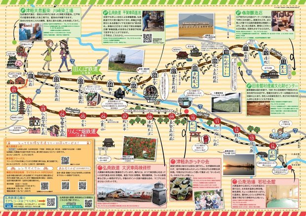 弘南鉄道ガイドマップ・まち歩きマップは、弘南線・大鰐線の路線紹介、お得なきっぷの情報のほか、両線を俯瞰したマップとともに沿線の体験できるスポット、各駅からのモデルコースなどを掲載したガイドマップです。