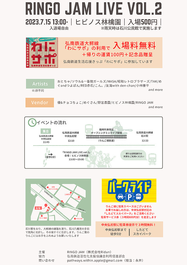 大鰐線石川駅徒歩5分のりんご畑で「RINGO JAM LIVE」