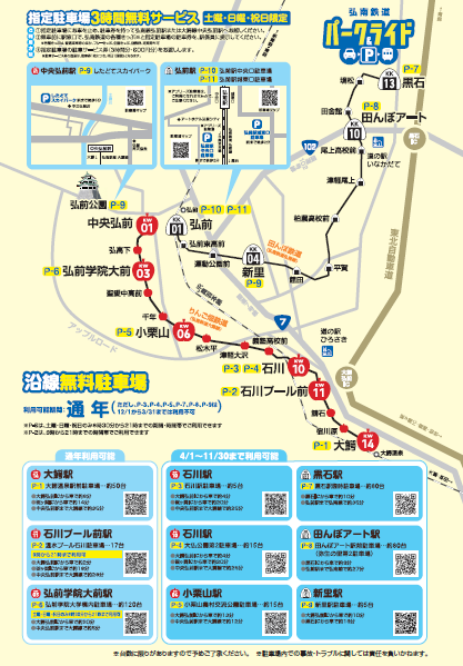 弘南鉄道ご利用の方は、沿線に設置する無料駐車場をご利用いただけるほか、