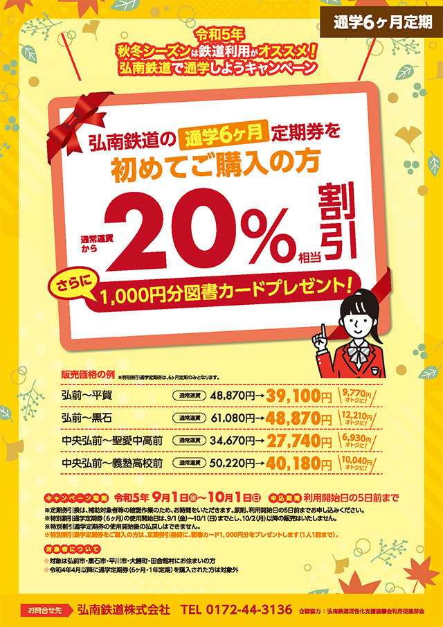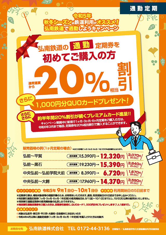 このお得な機会に、通勤・通学手段として、弘南鉄道をぜひご利用ください!