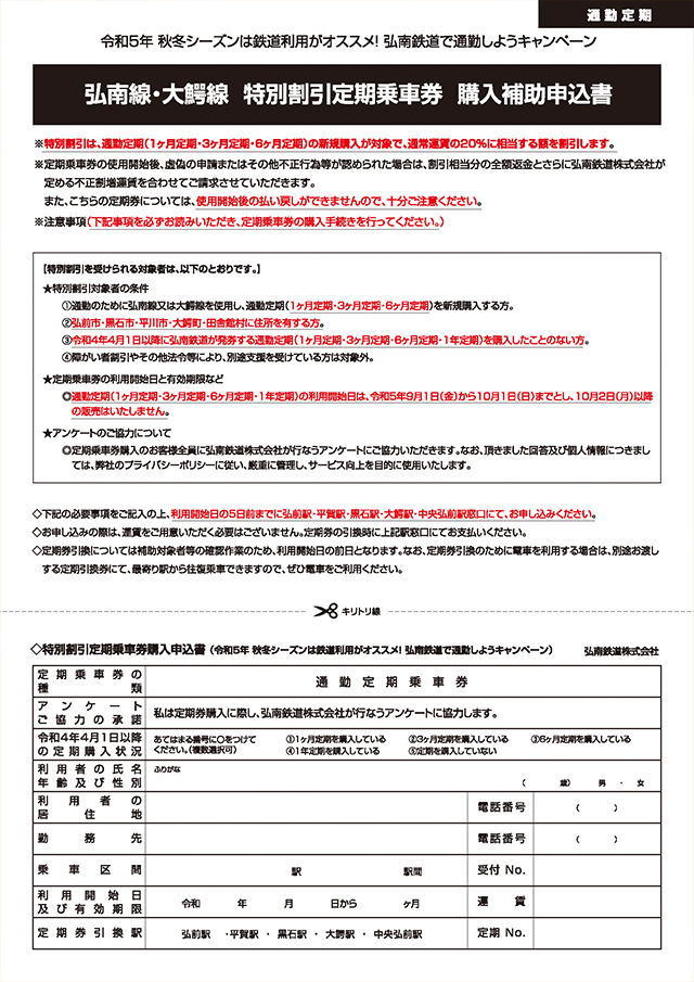 また、現在、弘南鉄道の定期券をご利用の方が、