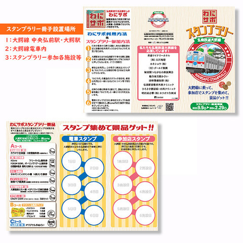 弘南鉄道株式会社及び弘南鉄道株式会社活性化支援協議会利用促進部会では、「わにサポ参加店スタンプラリーin中央弘前・大鰐」を令和5年9月9日(土)から開催しておりますが、ご好評につきまして、開催期間を延長することといたしました。