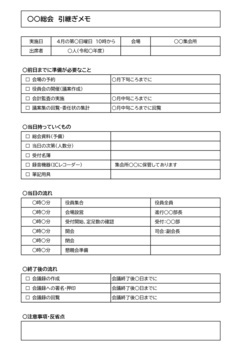 【参考】事業引継ぎメモ(例)Excel