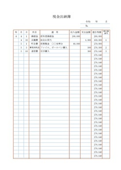 【参考】現金出納簿(例)Excel