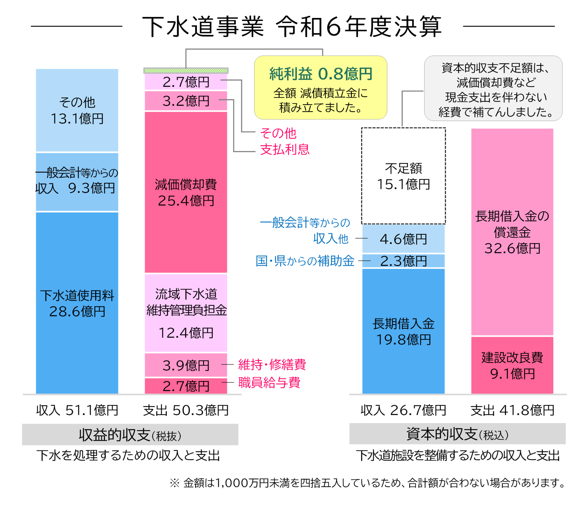 水道事業・下水道事業の令和6年度決算の概要は以下のとおりです。