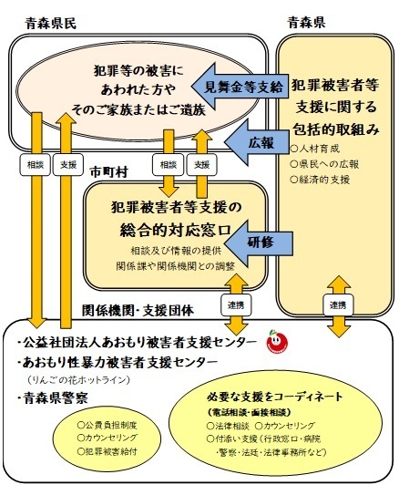 犯罪等の被害にあわれた方やそのご家族等が、安心して暮らすことができるようにするため、弘前市と関係機関等が連携して犯罪被害者等の支援を行います。