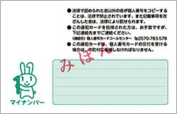 令和2年5月25日以降に、出生や海外からの転入で初めてマイナンバーが付番された方には、「個人番号通知書」を郵送し、マイナンバーをお知らせします。「個人番号通知書」は、通知カードと異なり、マイナンバーを証明する書類として使用する事が出来ません。