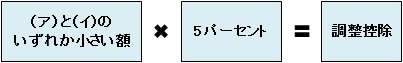 次の(ア)と(イ)のいずれか小さい金額の、5パーセントが調整控除となります。