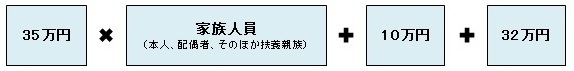 家族人員(本人と同一生計配偶者、扶養親族)の数に35万円をかけた金額に42万円(10万円+32万円)を加えた金額